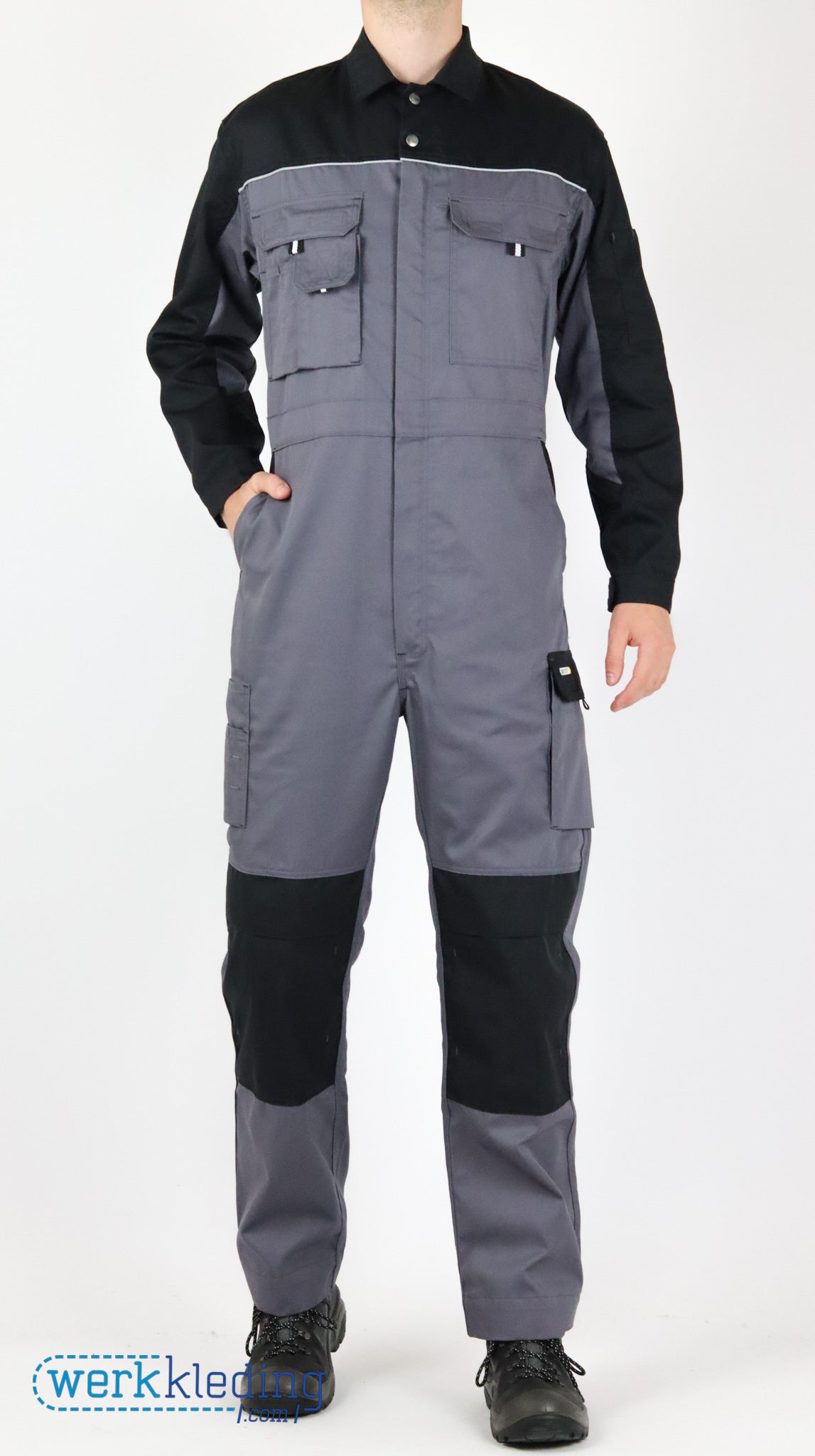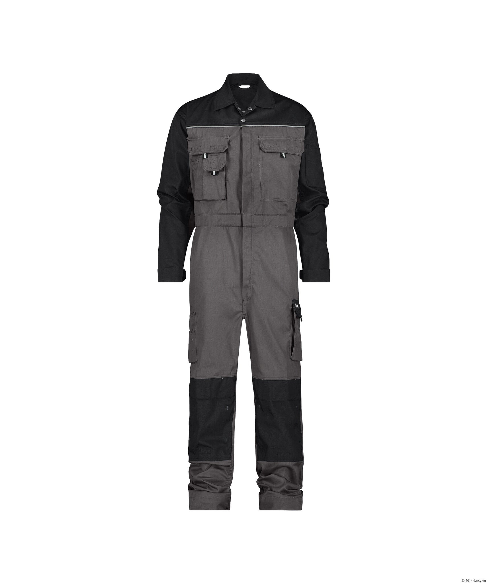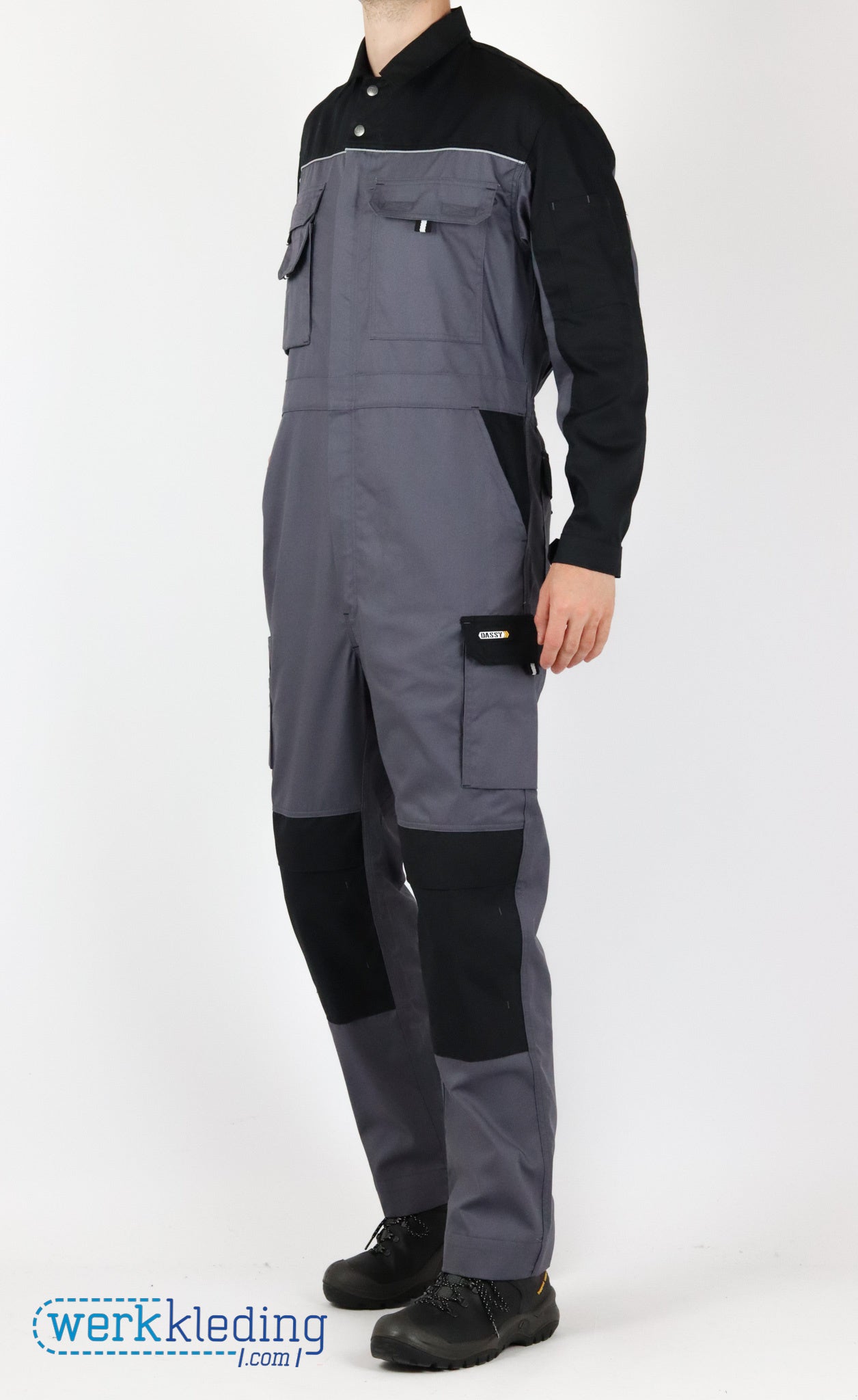 Deze overall met kniezakken van het merk DASSY bestaat voor 65% uit polyester en voor 35% uit katoen. De overall is naast de kniestukken ook uitgerust met handige opbergzakken. De overall is leverbaar in de kleuren marine/korenblauw, cementgrijs/zwart en zwart/cementgrijs.