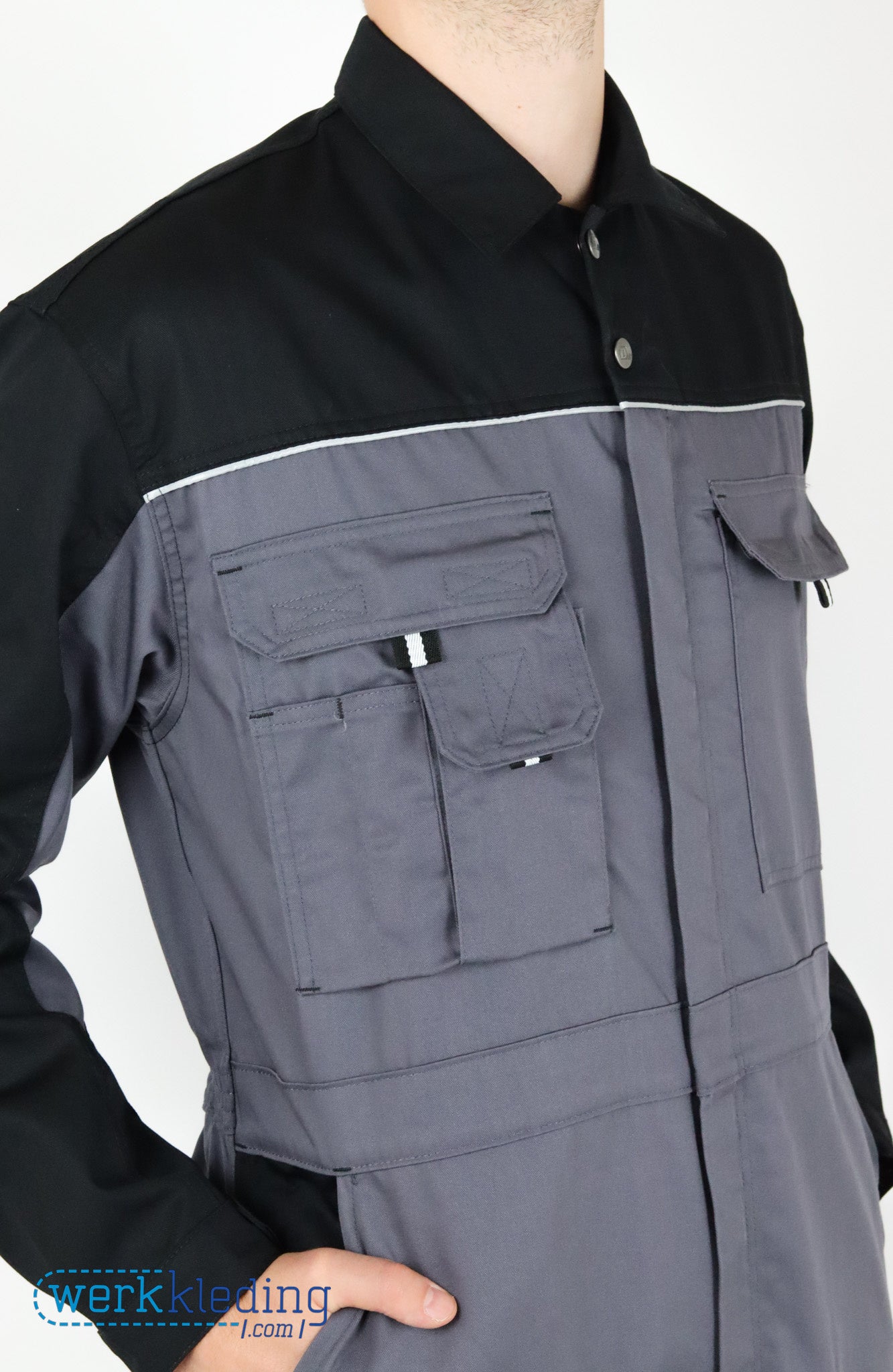 In combinatie met de Cratos kniestukken van DASSY voldoet deze overall aan EN 14404!