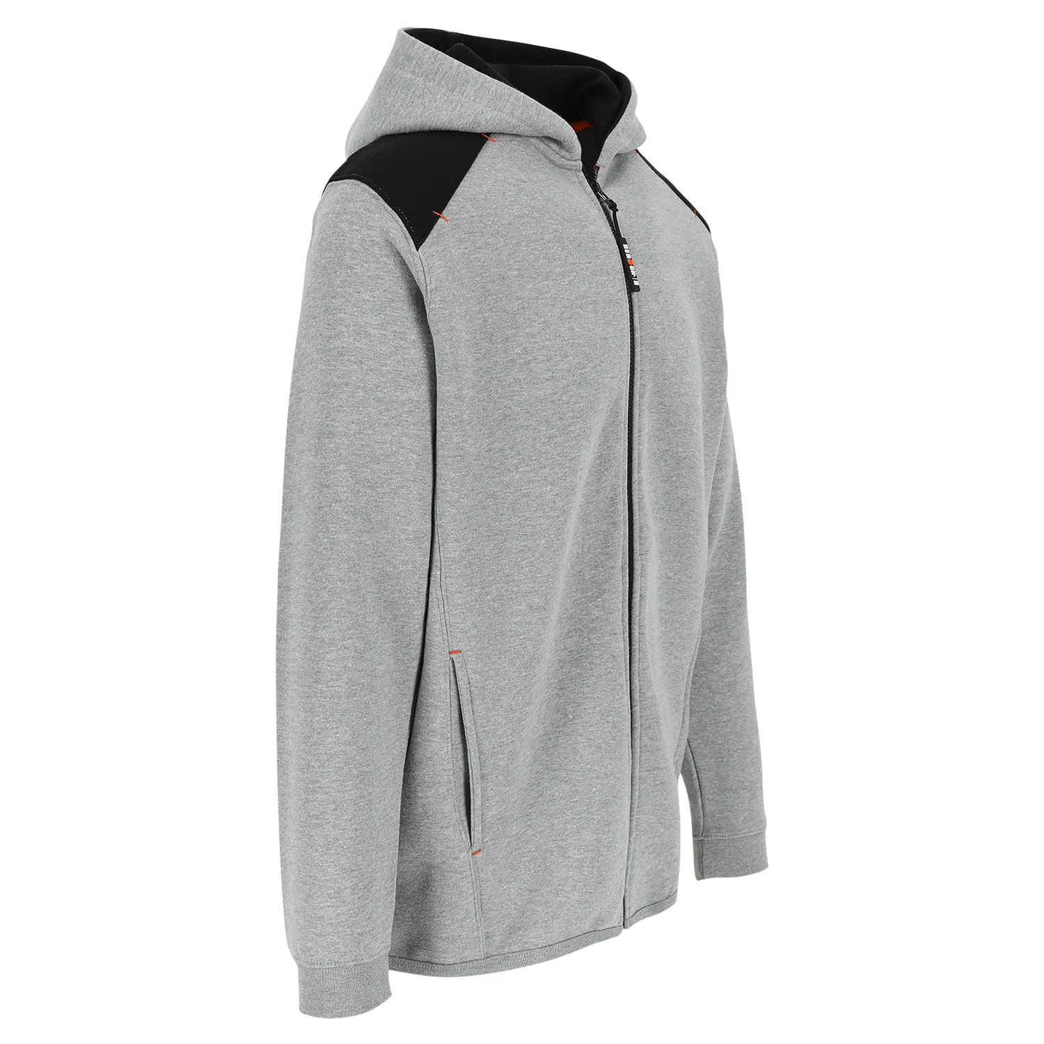 Sweater met kap en lange rits - versterkingen op de schouders en ellebogen - 2 zijzakken - ribmanchetten - extra lange ruglengte