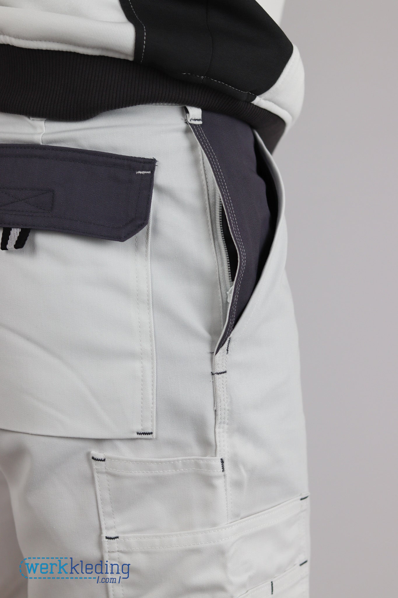 2 steekzakken, 2 achterzakken met klep, 2 dijbeenzakken