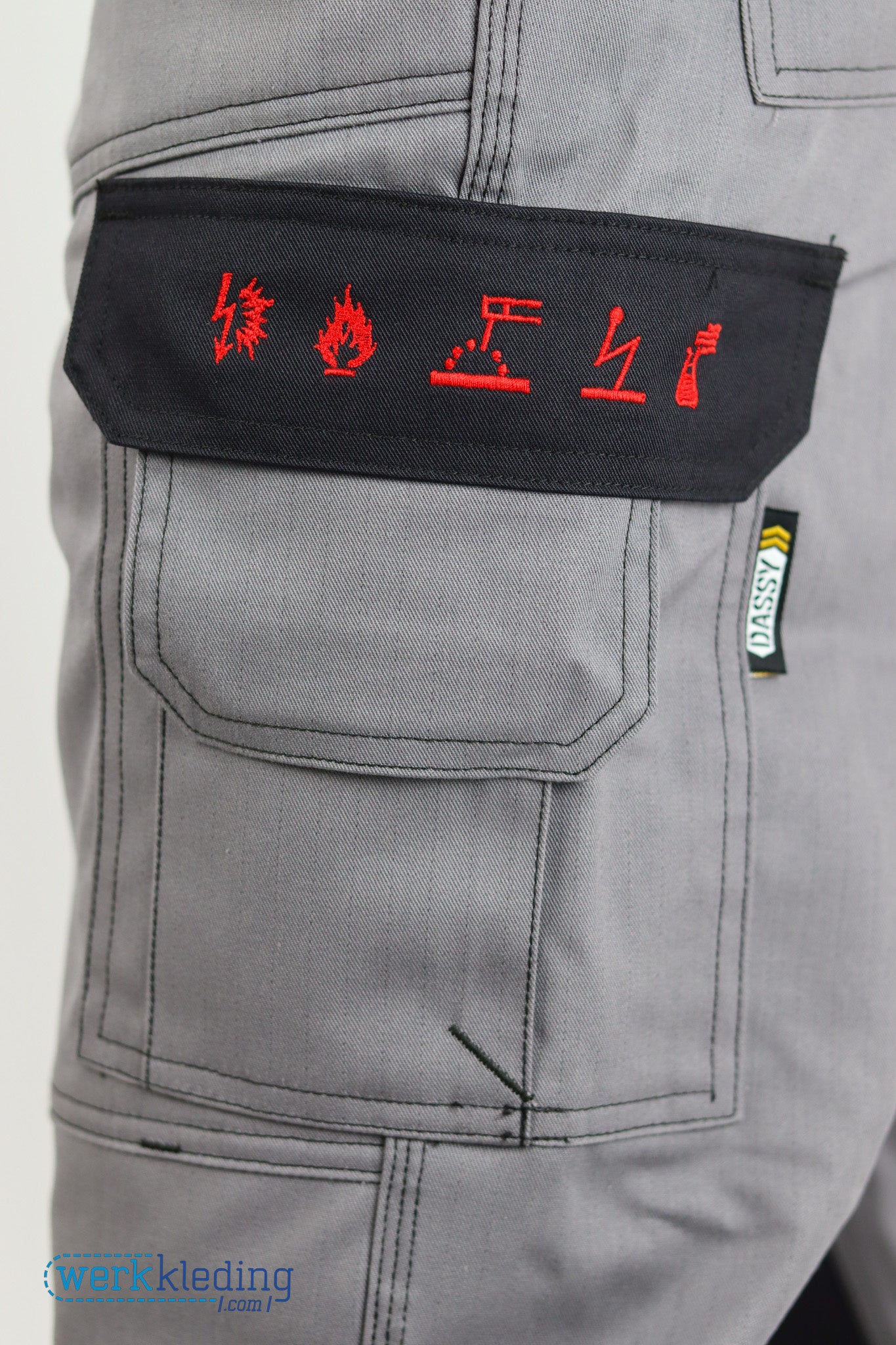 In combinatie met de DASSY kniestukken Cratos, beschikt deze werkbroek over EN 14404:2004 +A1 Type 2 level 1