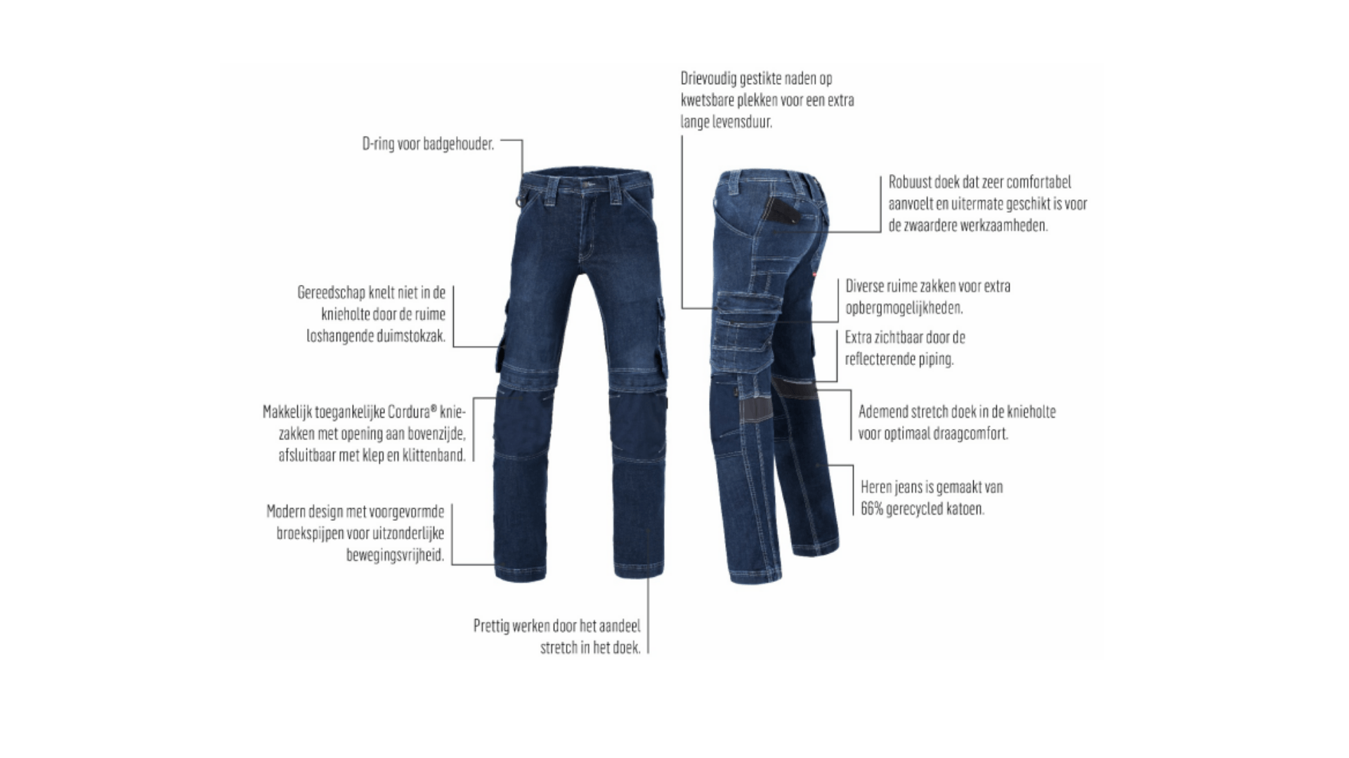Werkspijkerbroek met kniestukken en stretch